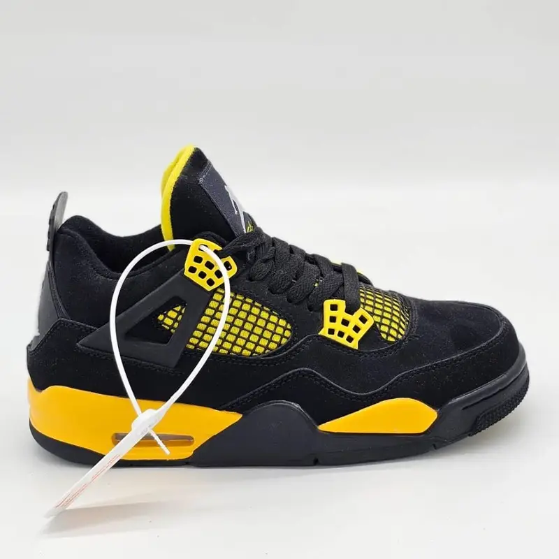 کتونی جردن ۴ مشکی زرد با ترکیب چرم و جیر با کیفیت، واحد Air قابل دید در پاشنه و زیره مقاوم، انتخابی ایده‌آل برای بسکتبال، استفاده روزمره و استایل خیابانی است. رنگ‌بندی مشکی و زرد جذاب، ظاهری برجسته و پرانرژی به این مدل بخشیده است.